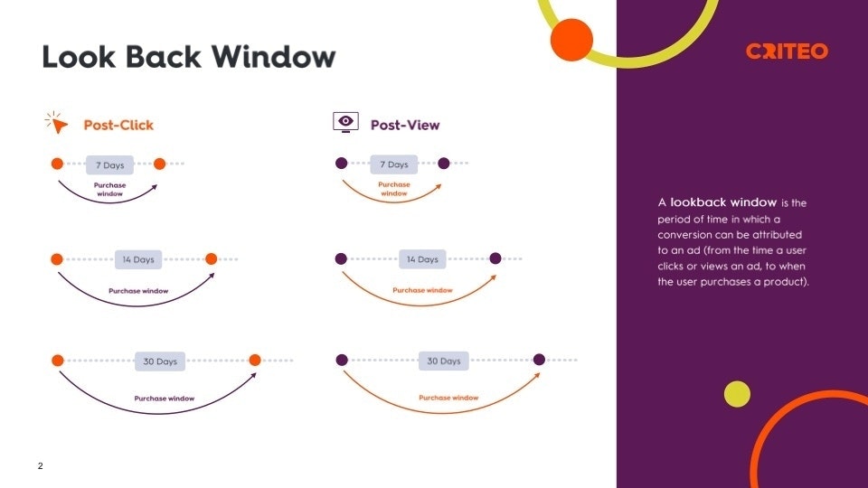 Look Back Window: We only attribute purchases made within a selected time after your ad was either clicked on or seen.