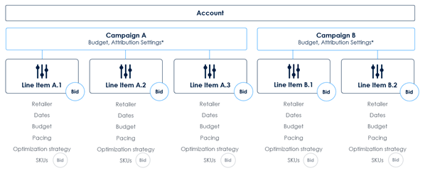 Each campaign can consist of one or several line items, which group your ads by retailer, dates, format, SKUs, and targeting. You can run ads only after creating a campaign and at least one-line item.