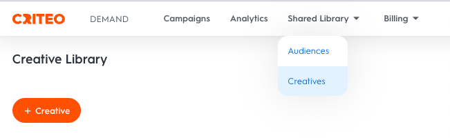 You can find the Shared Library on the top navigation menu. From the Shared Library, you can select Audiences or Creatives.