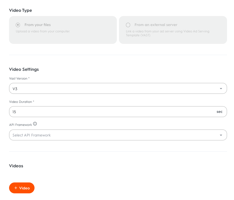 From your files: If selecting a creative from your computer, enter the video settings