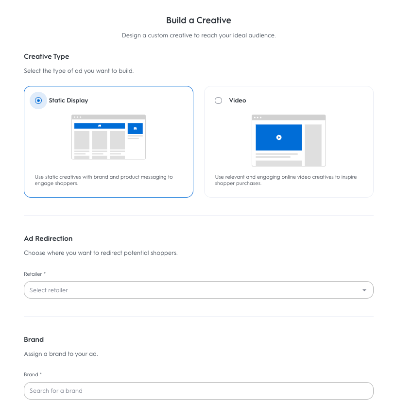 Select the retailer you would like your ad to redirect back to. This retailer's first party data will be used to power your ads.