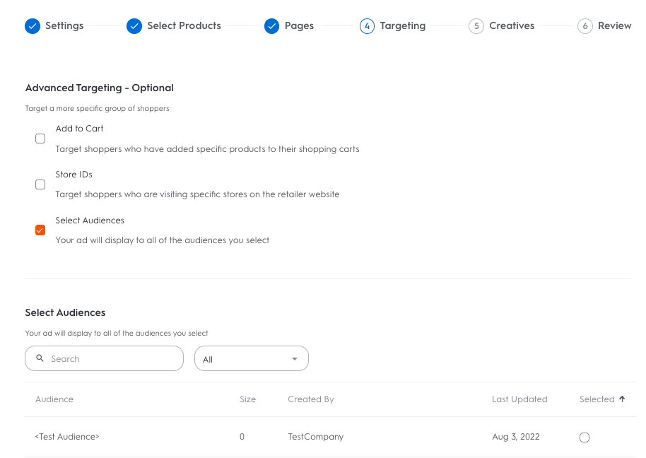 Search for and select at least one audience.